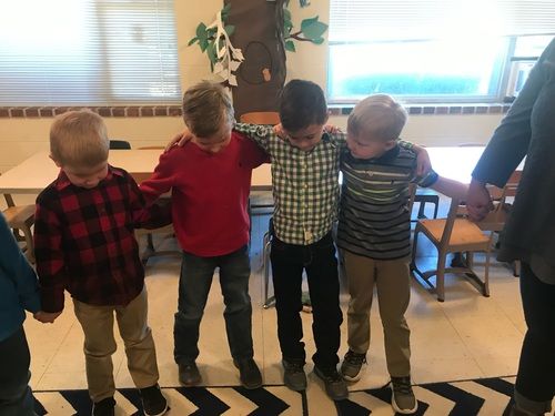 We begin each Sunday together worshipping in the sanctuary. Then we move downstairs with a time of small group prayer, offering, lessons and activities.
